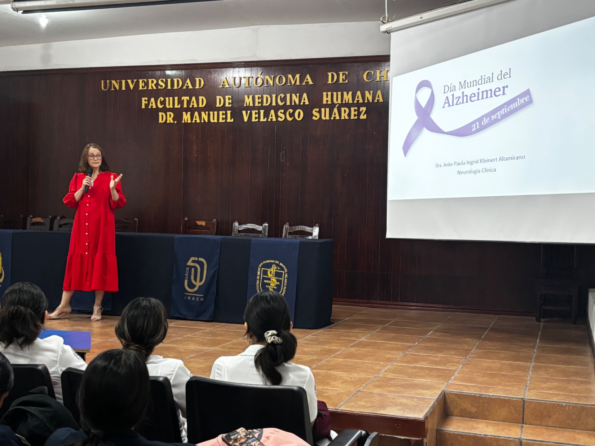 Con mucho gusto compartimos que nuestra querida compañera María Elena Abarca Medina, de la Licenciatura en Gerontología, de la Facultad de Medicina Humana, Campus II, fue galardonada con el segundo lugar por el impacto de su proyecto "Recuperando memorias: el impacto de la danza y la música con beneficios motrices y cognitivos" cuyas actividades prácticas con danza y musicoterapia se realizaron a nivel domiciliario con familias y personas que viven con demencia, usuarios de la Asociación Chiapaneca contra el Alzheimer.
